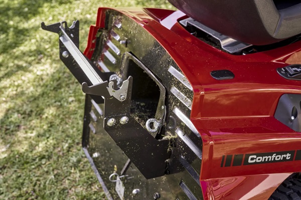 Vďaka novému otočnému bodu je na vyprázdnenie veľkého 250-litrového zberného koša na trávu potrebná menšia sila. Nový zámok koša tiež uľahčuje pripojenie a odpojenie a poskytuje dodatočnú bezpečnosť.