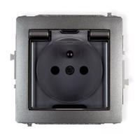 Zásuvka dvojitá odolná voči striekajúcej vode s uzemnením dymová Zara/Tesla